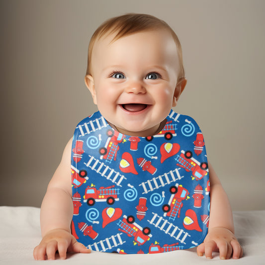 Fire Trucks, Ladders, Hoses, Hydrants and Fireman Hats Burp Cloth and Bib Gift Set