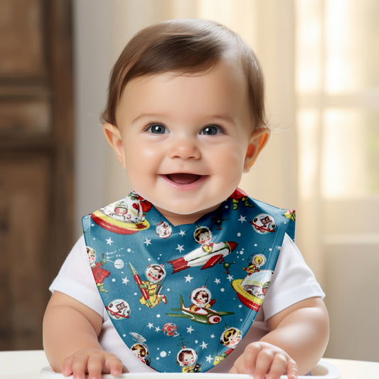 Vintage Retro Rockets Spaceships Burp Cloth and Bandana Bib Set, Baby Boy or Girl