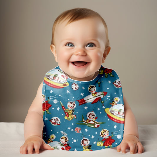 Vintage Retro Rockets Spaceships Burp Cloth and Bib Set, Baby Boy or Girl